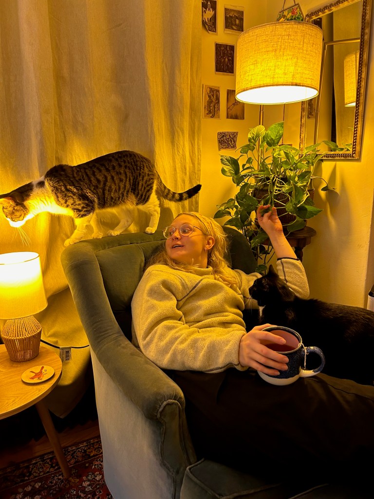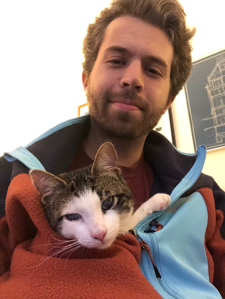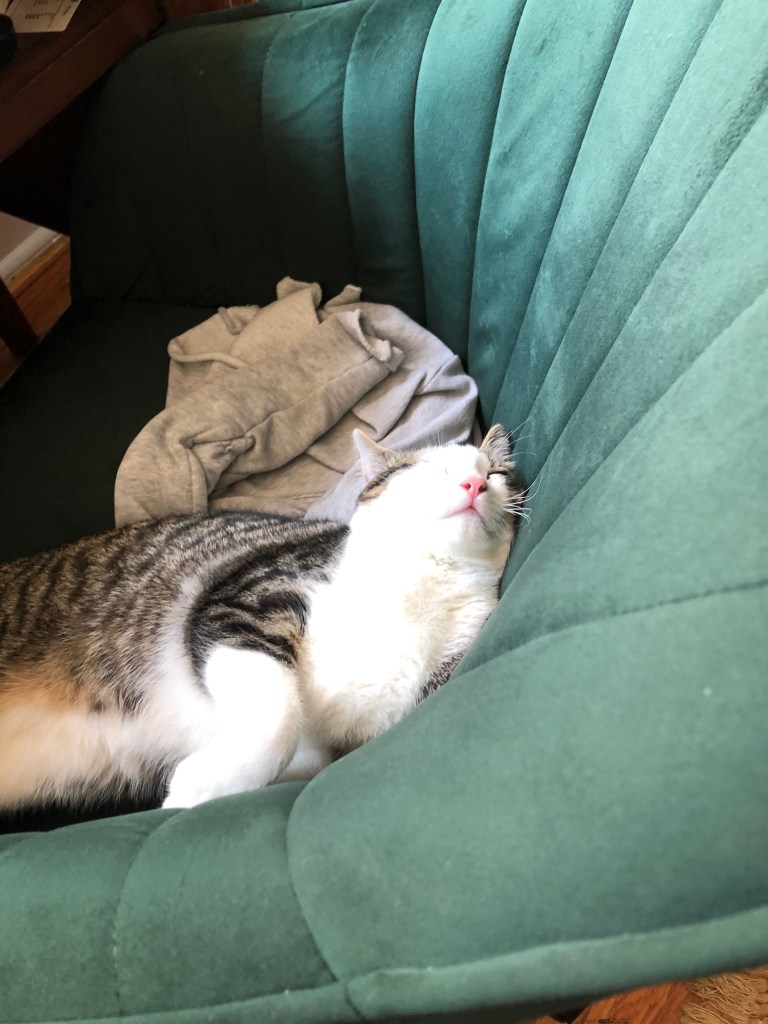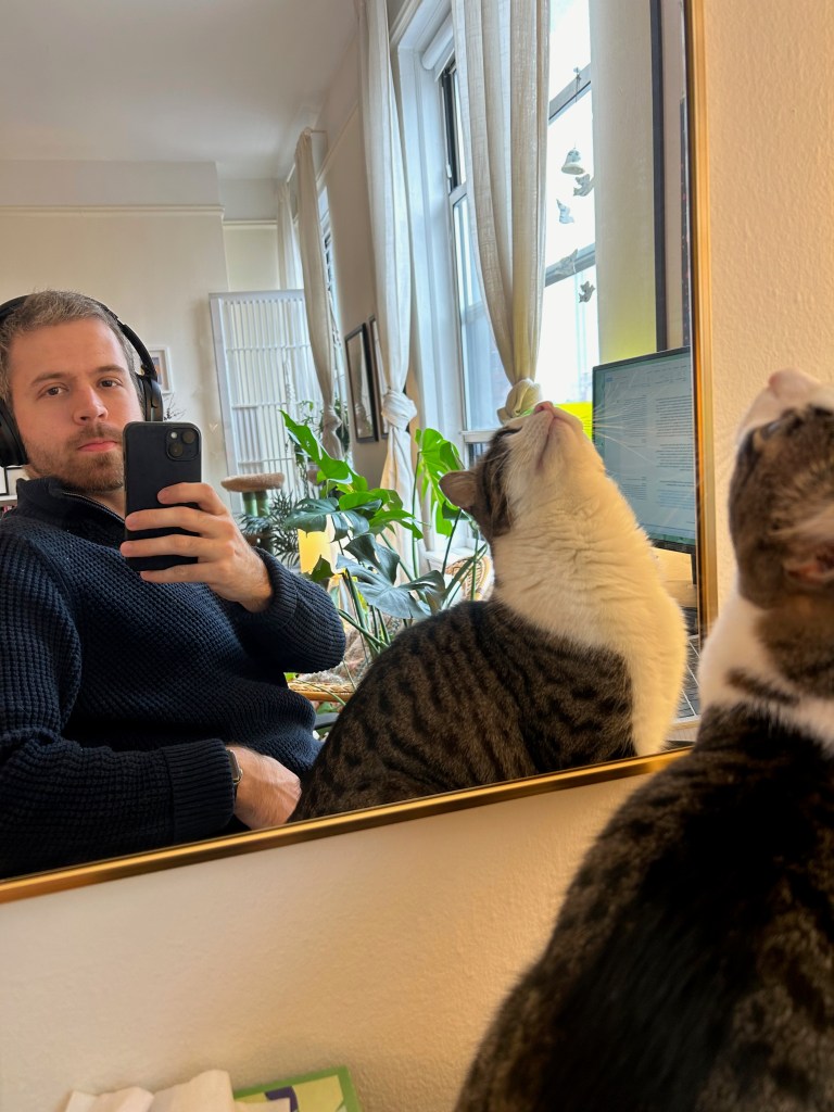 In a way it was an ADHD-like kind of attitude, especially when he was a kitten. He could never sit still and would do these tours of the two rooms in our 1-bedroom where he would do a circuit around the room, first across the windowsill, then the TV stand, and then across the bookcase. He’d check out everything on this, the plants, and notice anything that was new or had been moved. He loved when Anna would rearrange things in our apartment, which was frequent since we do a lot of redecorating.