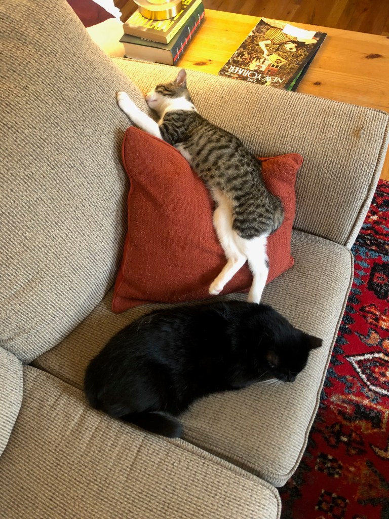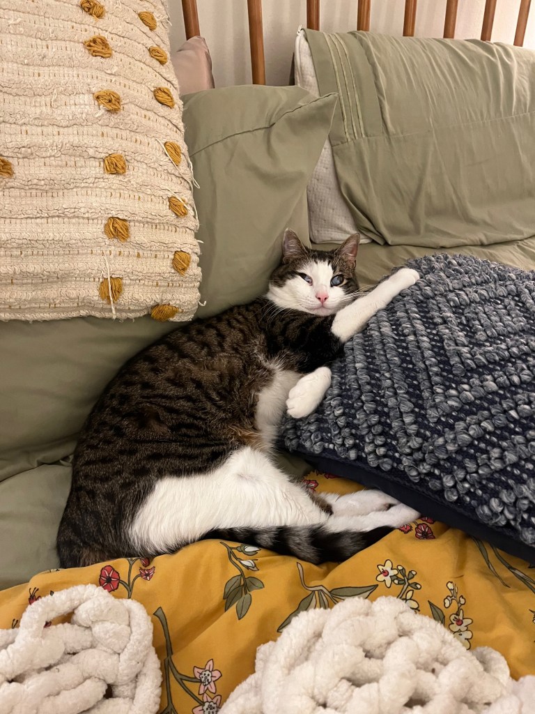Franklin’s oddness in some ways came from how smart he acted. He was like a little person almost. Nothing sums that up more than how he, like any sensible person, preferred to use pillows when he slept. Usually, a cat sleeps wherever and often on just a completely flat surface. Sometimes, it’s a comfy blanket. But that wasn’t enough for Franklin. No, he also needed to prop his head up with a pillow, preferably also made of some comfy thing. So his favorite place in our bed was right at the top with us: