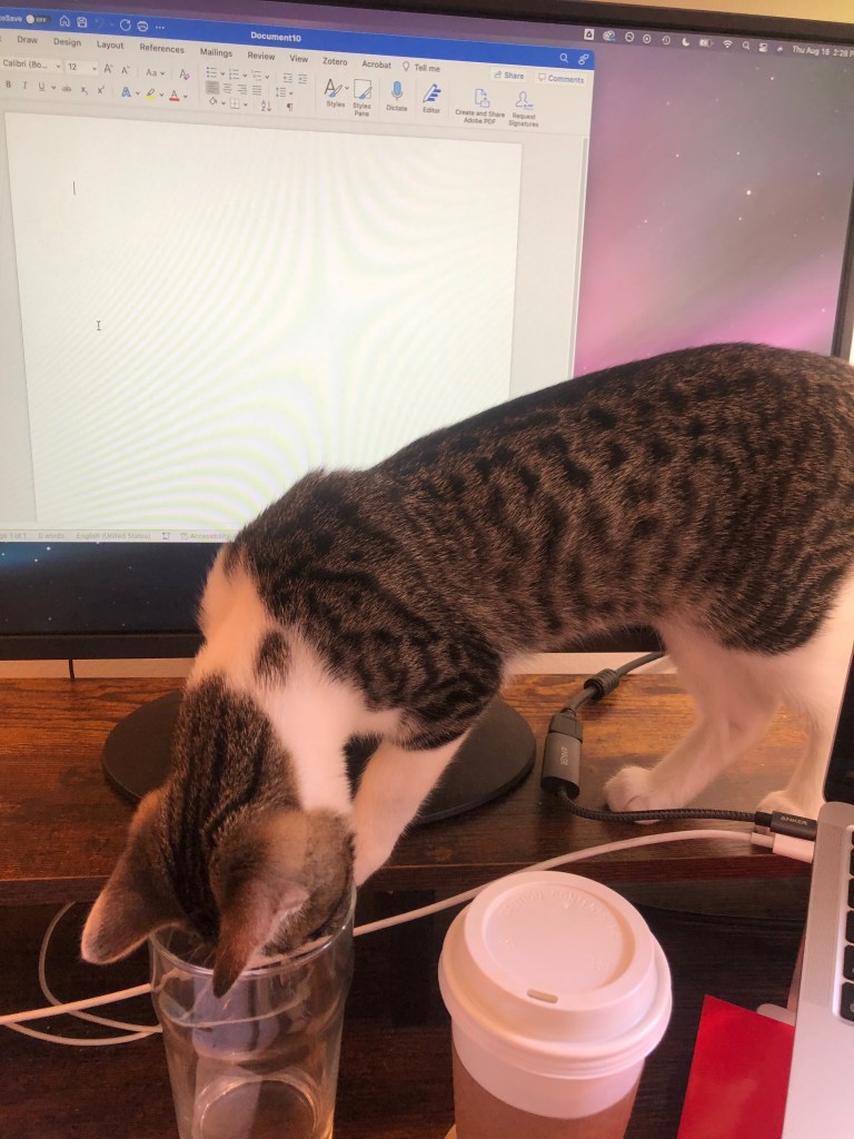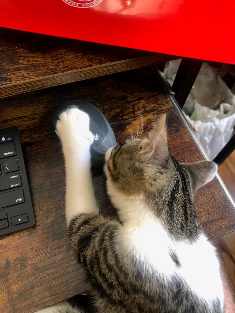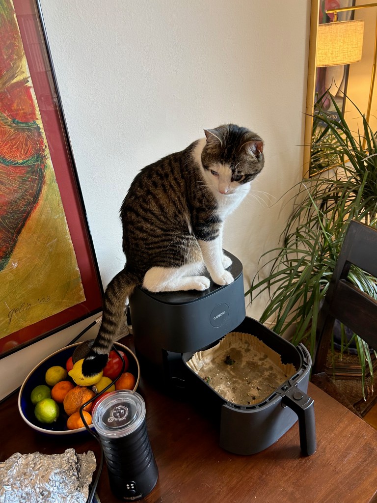 Friends don’t always have the right opinions. But you tolerate their sometimes strange views because you love them. We did the same with Franklin’s attitude toward technology, against which he was frankly prejudiced. He was (by all accounts) a Luddite through and through. Some cats are downright technophiles. They are very curious about all the new bells and whistles. Not Franklin. His motto was, if it beeps, get it the hell away from me. If only we could have his fortitude and dedication to the analog. Clearly he had a good point, since it was never really clear what we were doing with all these things: